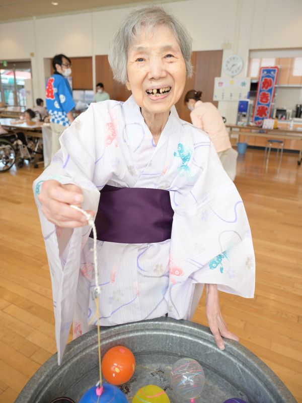 規模の大きい行事では、出来るだけ多くのご入居者を撮影するよう努めています。納涼祭でも、素敵なお写真を沢山撮影することが出来ました。
