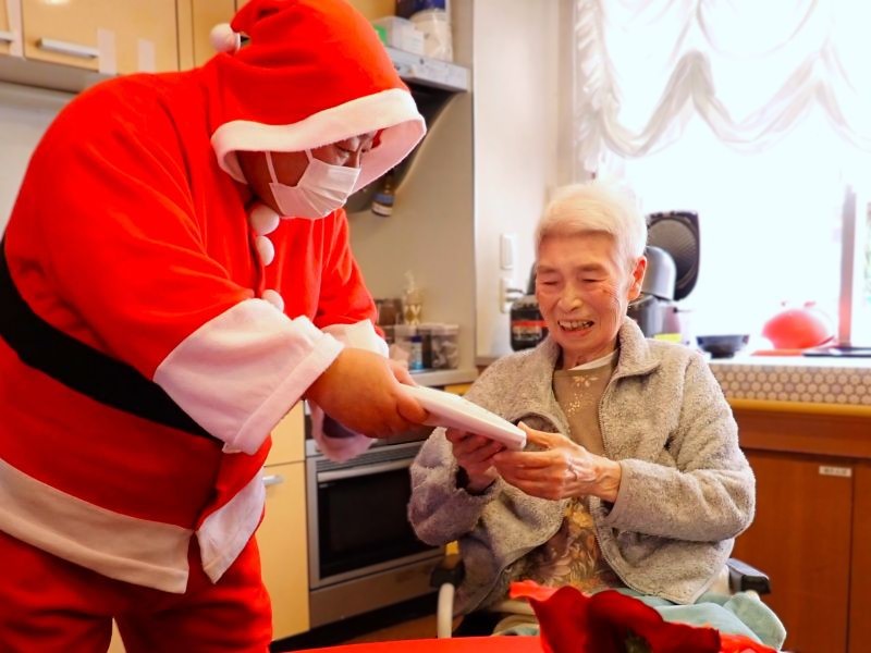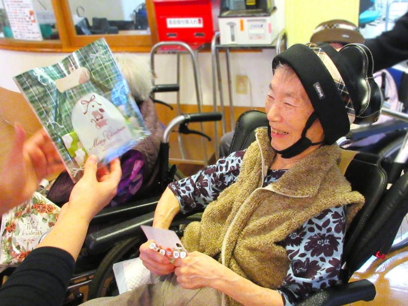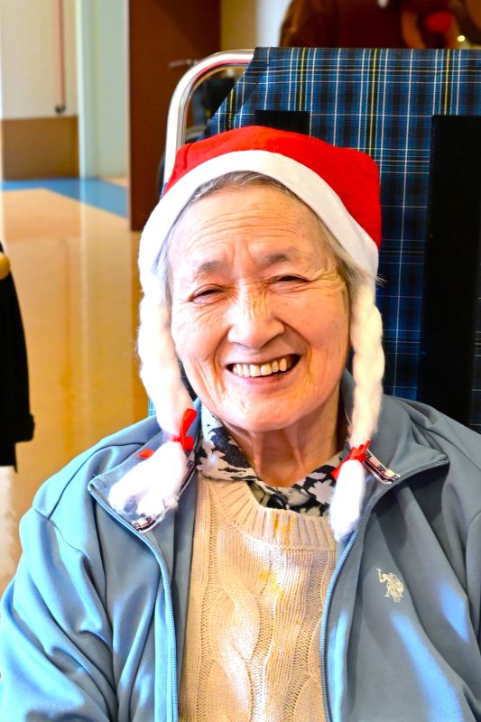 クリスマス会~皆さまのスマイル~ 各フロアでクリスマス会を実施しました! ご入居者の笑顔がたくさん見られましたので、ご紹介します。 クリスマス気分の笑顔 サンタからのプレゼント ビンゴでにっこり クリスマスミニケーキと笑顔